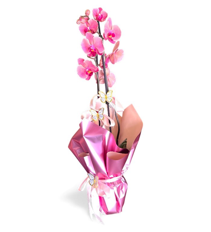 Fuşya-Pembe Orkide Saksı Bitkisi – Kelebek Süslemeli